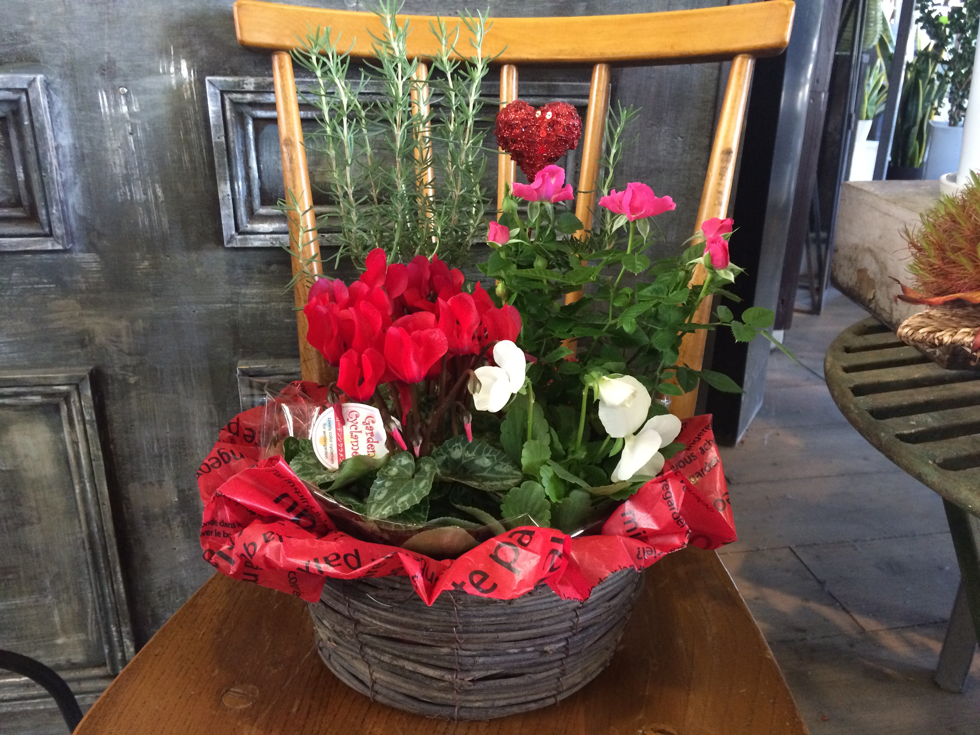 年末を彩るシクラメンは、赤い花びらが上方に反り返って咲く姿が篝火(かがりび)に似ている事から・・カガリビバナ名づけられたそうです。現在では、新種改良され、白やピンク・・複色のものまで、豊富に揃っていますね・・年々・・種類も増えてきている様に思います。入荷が楽しみです~♪ 花の選び方は・・花芽が葉腋にでき、葉一枚に花芽が一つつく為、葉の多いものがお勧めです。 観賞時は明るい室内に置き、土の表面が乾いたら、たっぷり水を与えます。開花中、咲き終わった花は、花茎ごと抜き取り、カビ病にならない様に注意しましょう!